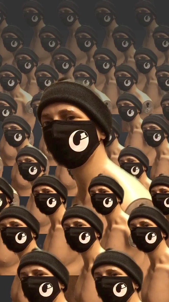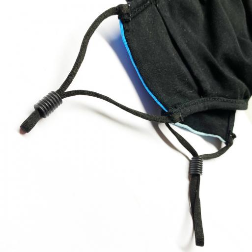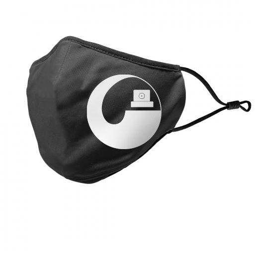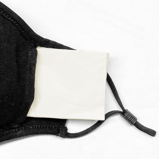 Unsere schwarze Behelfs-Mund-Nasen-Maske mit verstellbaren Elastikbändern und Einschubmöglichkeit für einen Filter, mit weißem Cans&co Logo