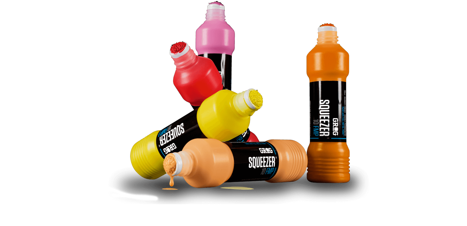 Der Klassiker für die TascheDie Full Metal Paint Farbe sorgt dafür, das du auch mit dem großen Bruder des beliebten Grog Mini Squeezers auf allen Untergründen Spaß hast.