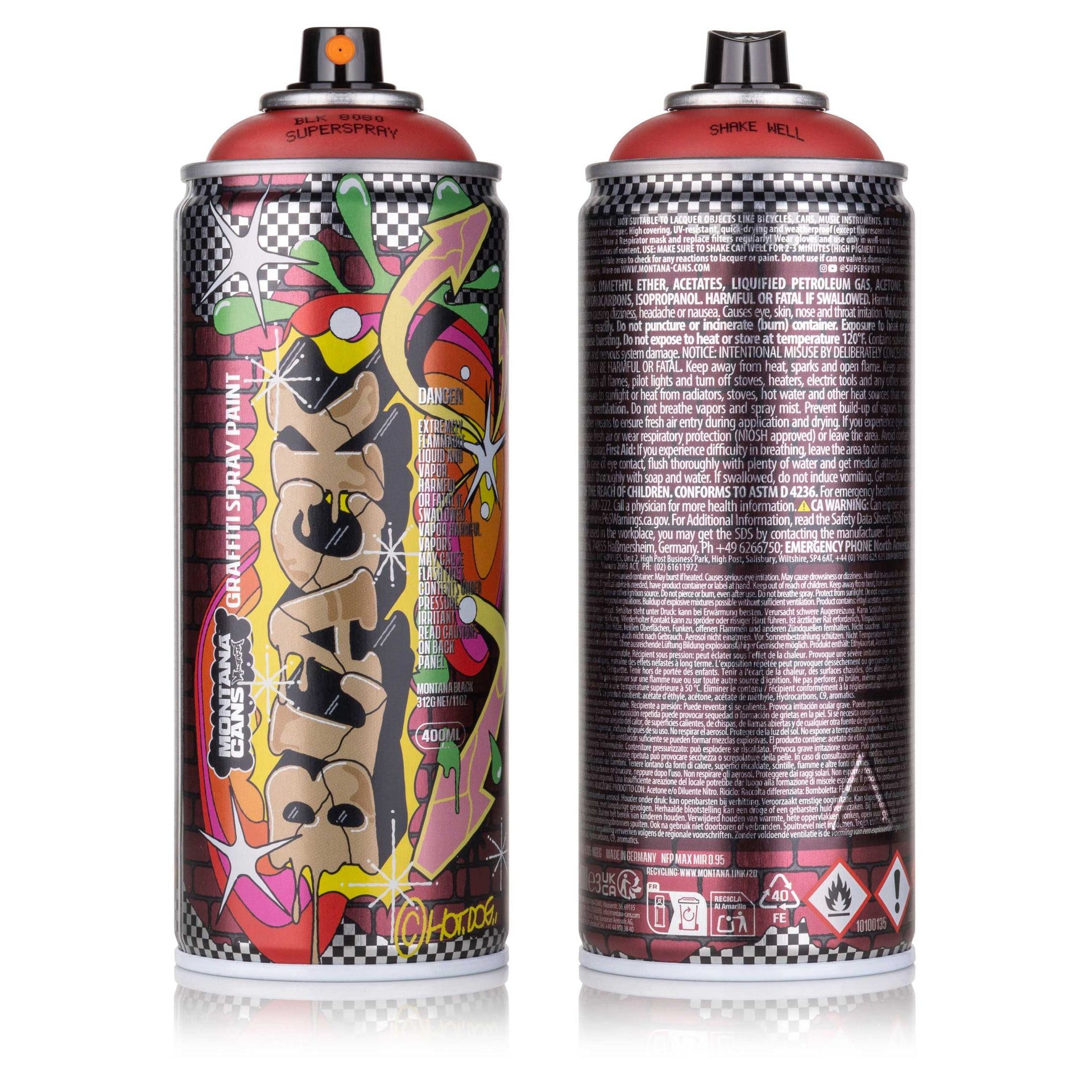 Das verspielte Design der Dose spiegelt Hotdogs Leidenschaft für klassische Buchstaben mit unverwechselbarem Stil wider. Der Meister des Meme-fiti und Montana Cans – ein perfektes Match. Jetzt erhältlich!