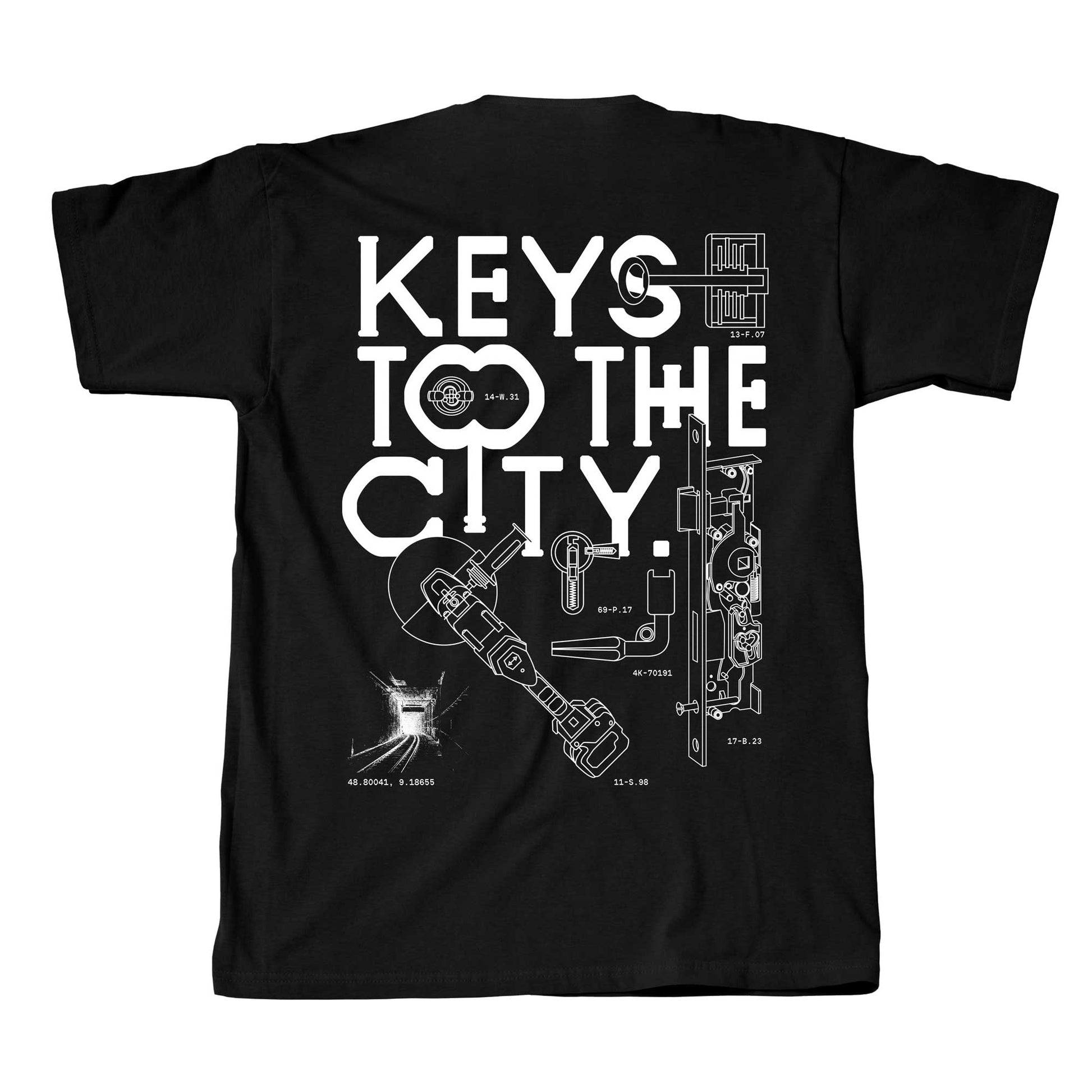 Das T-Shirt „Keys to the City“ bietet einen Einblick in die Werkzeuge für nächtliche Erkundungen